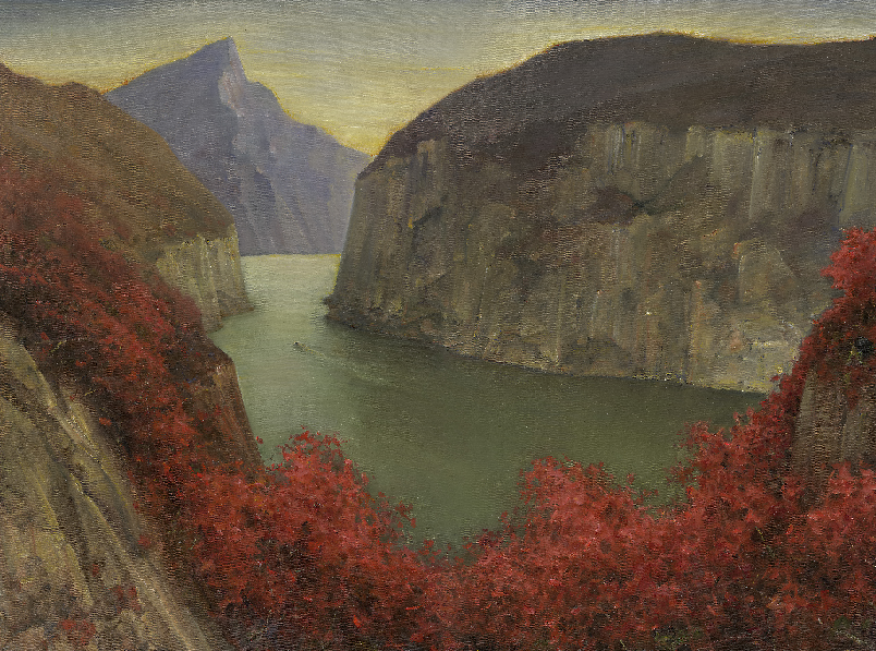 信的《感夏)等。返朴还淳,浑然天成。有的特色鲜明,又兼收并蓄。如晏济元的《江峡秋意》潇酒自如。谭学楷的《巫峡烟云》墨变渗化。刘表洪的《三峡烟云》沉雄华滋。黄山的《千山鸣泉》布局严谨。黄越的《乌江画廊百里春》爽快秀逸。