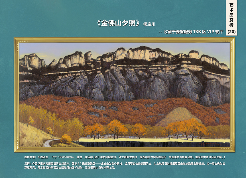 重庆的崇山、峰峦、叠嶂、峭壁、峻岭、绝壁、悬崖、翠谷、巫岩等,历来都是画家笔下的“笔底春风、醉墨淋漓、铁画银钧。”画册中入选的侯宝川创作的油画《金佛山秋景》,作品以重庆南川的世界自然遗产、国家5A级旅游景区--金佛山为创作素材,运用写实的表现手法,形象刻画了秋天落日斜晖把层层山崖映染得金碧辉煌,如一尊金佛射出万道霞光的景观,旨在表现大自然神奇壮观之美。画册入选的冯建吴创作的水墨画《蜀道》“蜀道难,难于上青天”。蜀道内涵丰富,包括自三峡溯江而上的水道,由云南人蜀的樊道等等,但大多指翻秦岭越巴山进人古蜀地的道路。作品将巍峨的高山、缭绕的云雾与高耸的电塔、新修的大桥和谐地绘制在一起,笔墨厚重雄健,构图俊奇沉稳,蕴含着新时代改善交通面貌的殷切希望,体现出现代中国画艺术创新特点,也反映了艺术家全面深厚的艺术修养。画册入选的黄越创作的水墨画《夔门天下雄》作品以长江三峡代表性景观夔门为表现对象。画中山势伟岸,江水奔腾;左有城郭,右有古塔;远景青黛,近景苍松;令观者如在画中游。构图章法横向取势,横亘画面中间的白云使得众山皆有飞来之感。在笔墨语言的运用中,线条刚柔相济,墨韵虚实相生,使得作品风骨雄强,气韵生动。设色以墨色为主,略施淡彩,高洁雅淡,营造出夔门瑰丽险峻的宏大气象。
