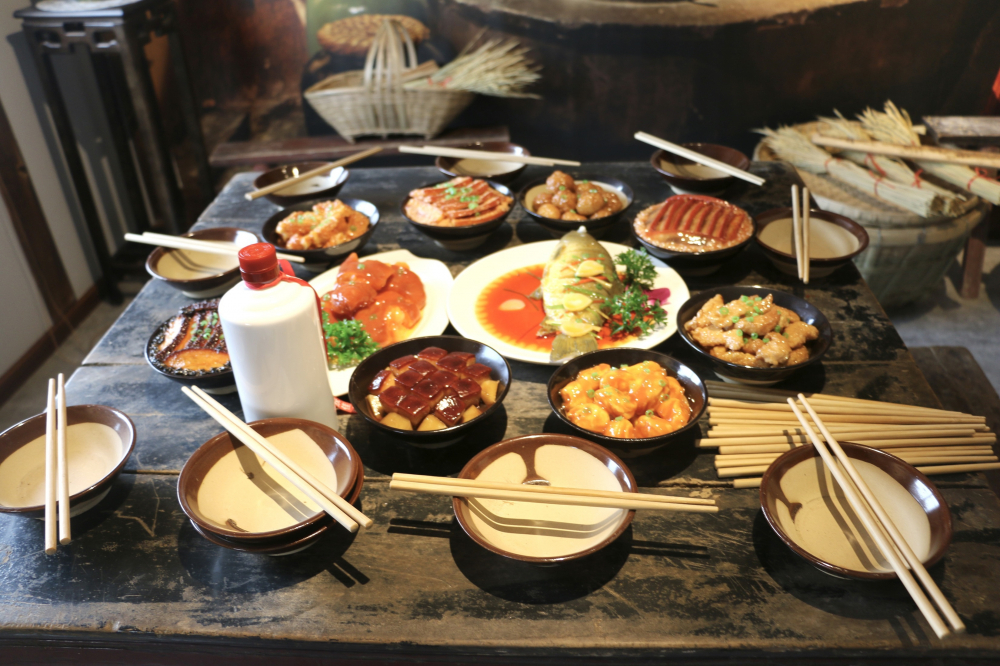 上游新闻记者在展览馆现场看到,馆内摆满了各式各样的老物件,还专门打造了过年时的农家场景:大门贴着喜庆的春联,屋内摆放着接地气的木头桌椅,一桌丰盛的“团年饭”,桌上的“菜肴”色香味俱全,饭桌旁还有“热气腾腾”的蒸笼……年味扑面而来。
