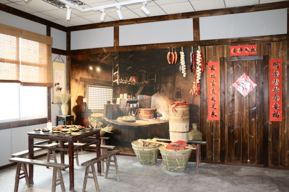 该民俗陈列馆利用村便民服务中心阵地打造而成,陈列面积约50平方米,展馆设置了“节气密码”“我们的节日”两大主题展区。