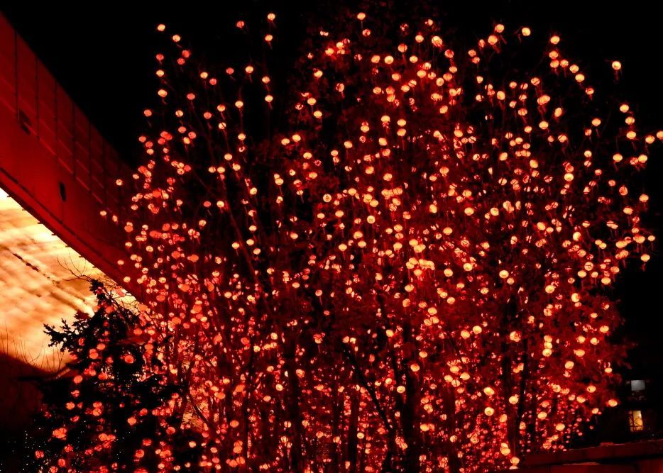 通过贴春联、挂灯笼、燃放鞭炮等形式