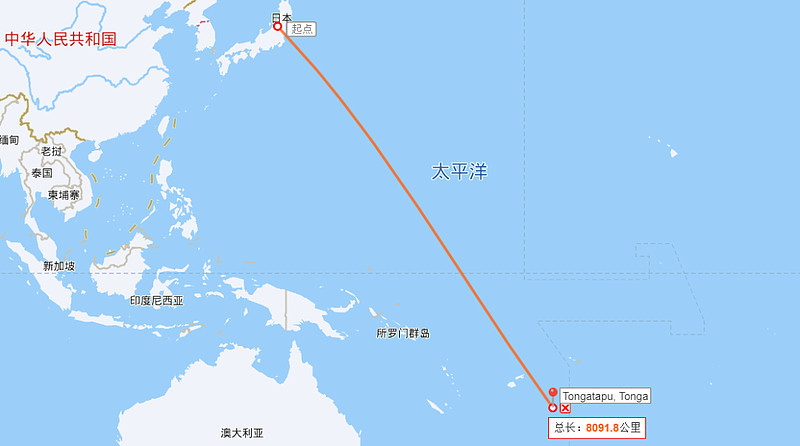 日本和汤加的距离