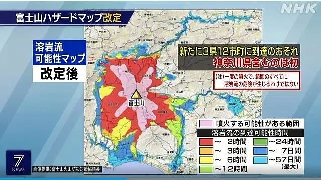 之前的地图受害区域仅限富士山周边的静冈县和山梨县,但这次修订后的影响范围扩大到了神奈川县。