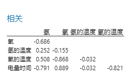 根据表格中的结果,氢含量与电量时间之间的 Pearson 相关系数为 -0.791,且 p 值为 0.001。p 值低于显著性水平 0.05,表明相关与零之间存在显著差异。相关性意味着随着氢含量的增加,产生的电量时间趋于减少。(回想一下,相关测量的是两个变量之间线性相关性的强度,且范围是介于 -1 [强负相关] 和 +1 [强正相关] 之间的数值。相关接近零表示两个变量之间没有强线性关联。)