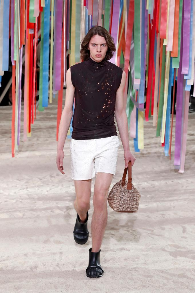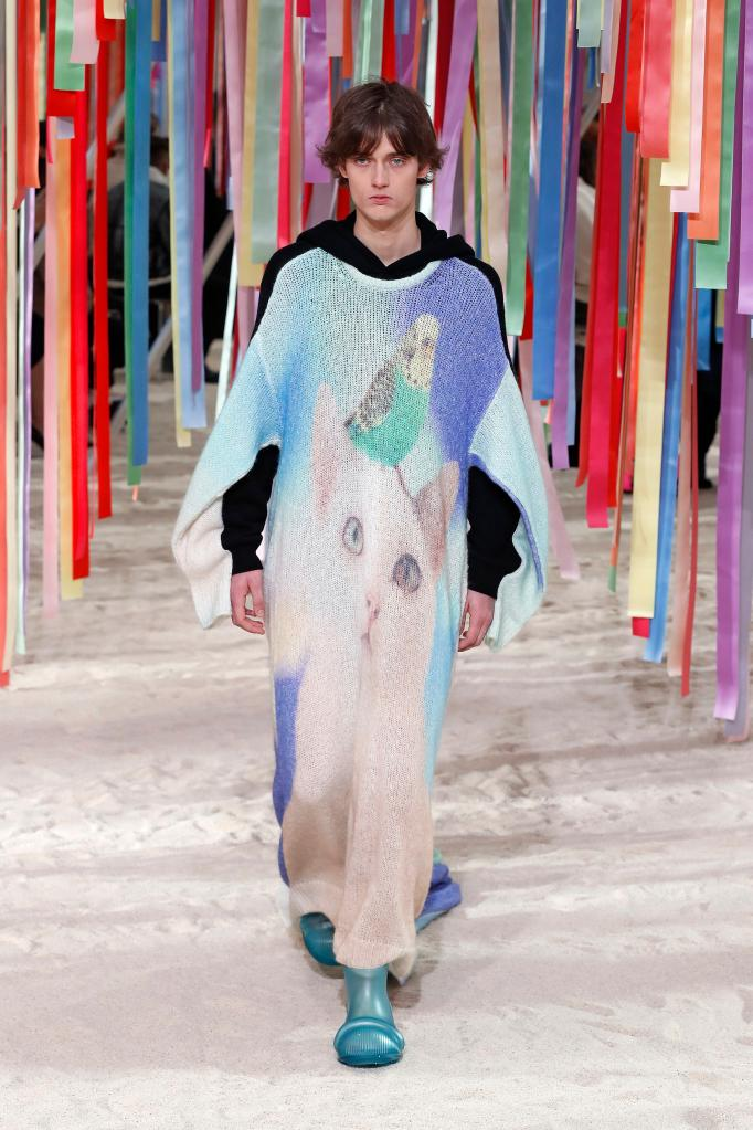 1月22日,模特在法国巴黎男装周展示LOEWE品牌2022-2023秋冬新品男装。