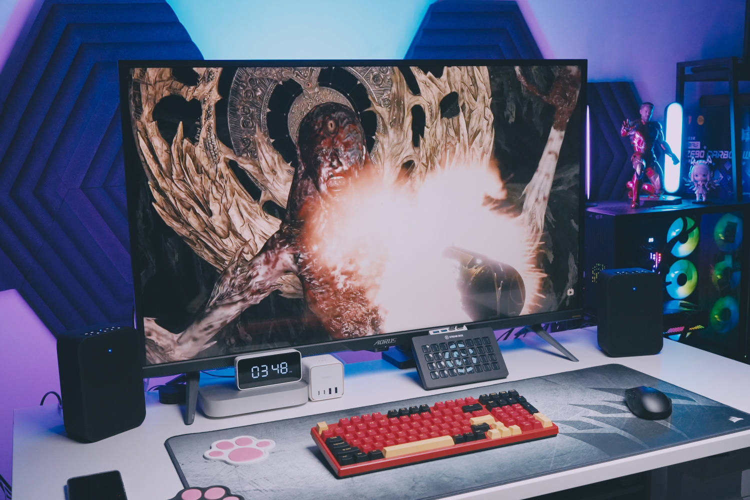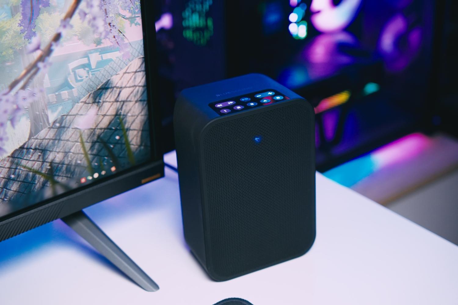 把它放在电脑桌上使用的时候,我会选择使用3.5mm音频接口,把它接到显示器上来使用。这样的好处就是不管我是使用电脑还是PS5,显示画面会和音频一并切换,不用重复接驳线材。对于游戏玩家来说,还是推荐使用有线连接,因为延迟会比蓝牙低很多,尤其是玩PC上的FPS游戏,体验会尤为明显。
