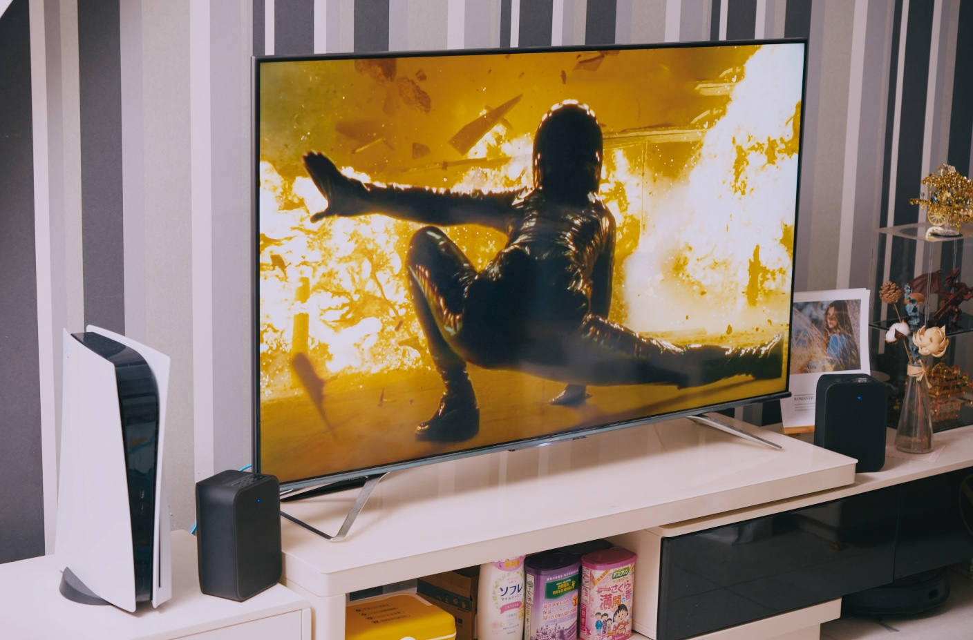 最近因为《黑客帝国4》上了,在观影前,特地在电视上又重温了一下前几部,《黑客帝国》系列电影的打斗桥段非常多,全程高能,虽然没能在电影院观看前几部电影,LSX的表现力让拳拳到肉的打击感,增加了不少的表现力,多少弥补了一点遗憾吧~看电影的时候,我还是使用有线方式来连接PULSE FLEX 2i,尤其是动作电影,体验会更好一些。而且特别值得一提的是,这款音响还配备了“红外遥控器”的功能,可以学习同步红外遥控器。如果家里有多余的电视、机顶盒等遥控器,可以直接用他们来直接遥控PULSE FLEX 2i。