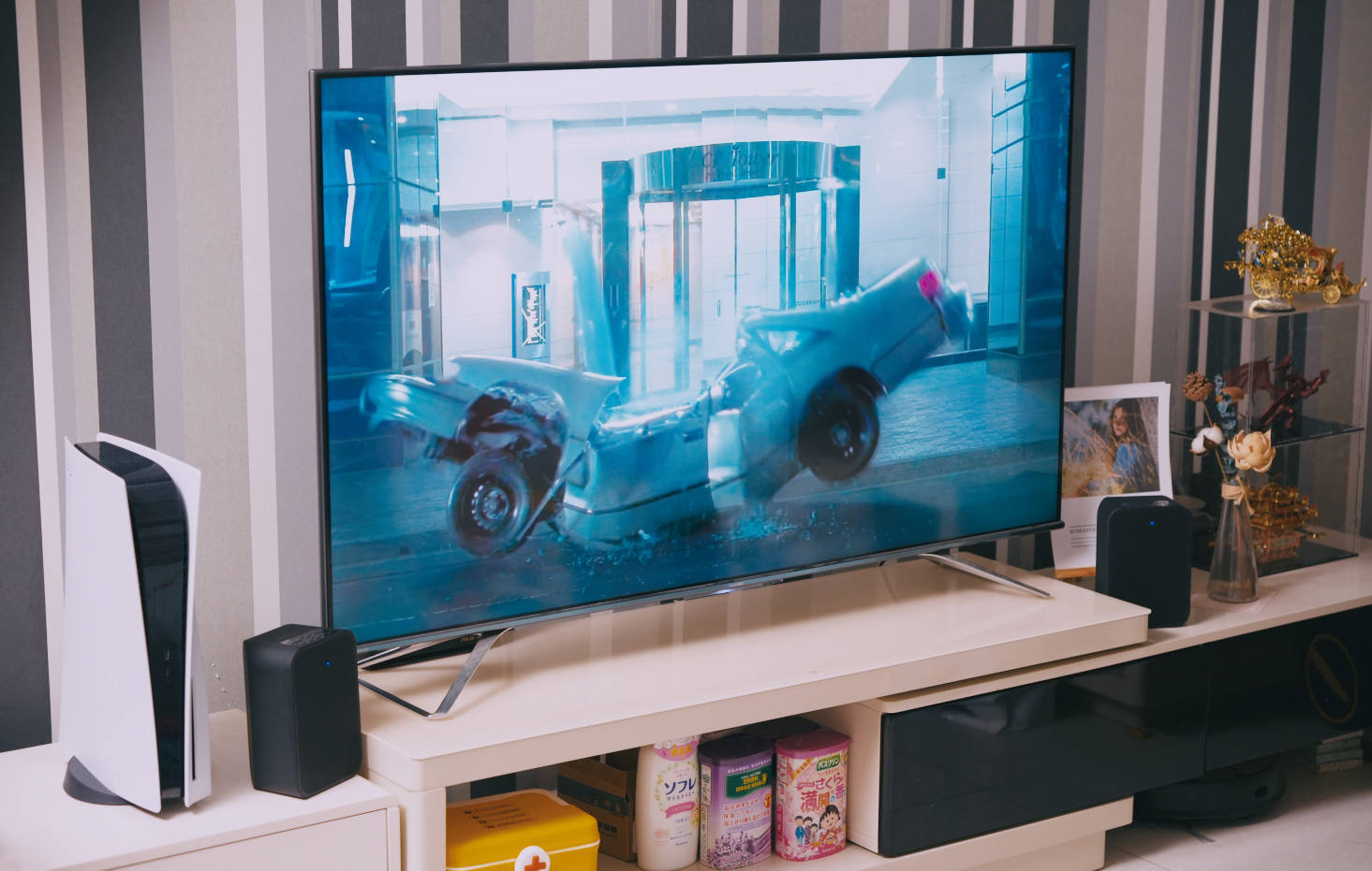 竖立放置适合电脑桌,或是电视旁。