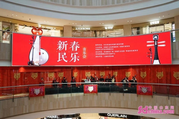 今天举办的浮山湾艺术商圈“乐动市南”海信广场国潮民族音乐会是市南区文化和旅游局、市南区商务局、市南区文联主办,由青岛海信广场、市南区文化馆、琴岛音乐家协会、八骏室内乐团、青岛歆海国际商务交流中心承办的以民族乐器演奏为主要特色的室内乐演出,节目中包含了琵琶、笛子和笙等民族特色乐器,民乐合奏《喜洋洋》等喜庆的民族乐曲,特别是海信广场作为青岛乃至山东连接世界时尚消费窗口的高端商业体,让时尚与艺术在传统文化节日中碰撞,体现出了艺术与商业的互融,传统与新潮的并存,也是青岛与世界的兼容并包。