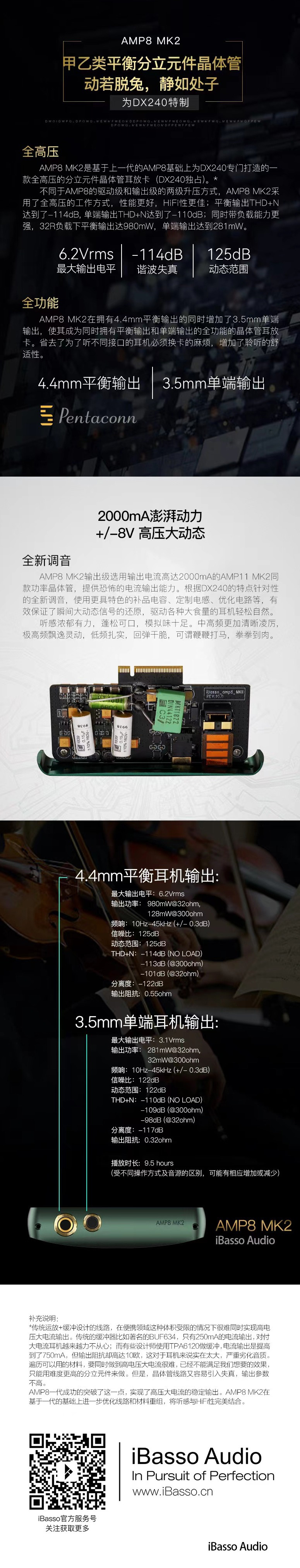 IT之家 1 月 24 日消息,艾巴索于 1 月 22 日推出了 AMP8 MK2 耳放卡。这款产品采用分立晶体管电路,专供 DX240 播放器使用,拥有 3.5mm+4.4mm 双接口。