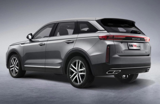 车身侧面的线条硬朗,从前机盖一直延伸至尾灯的腰线使增加了整车的立体感也拉长了整体的视觉效果,D柱加入了读个元素的装饰,看上去整体不会显得特别单调。在车身尺寸方面,奔腾T99分别为4800*1915*1685mm,轴距为2870mm,典型的中大型SUV的尺寸。