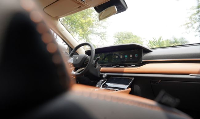 在科技性上,奔腾T99内部有三块儿大屏,坐在驾驶舱中很有感觉。仪表盘12.3英寸,设计页面很简洁,功能很多,包括行车电脑、导航、多媒体等。中控屏的车机系统强大,搭载了车联网系统,支持语音识别控制系统,可以控制娱乐、导航、天窗这些常用的功能,屏幕的清晰度和反应速度也不错。