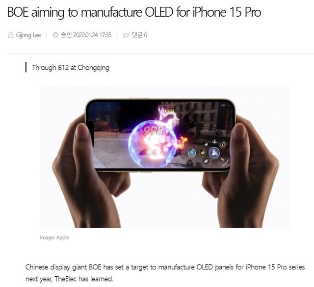 据TheElec报道,国产显示器巨头京东方已经设定了明年为iPhone 15 Pro系列制造OLED面板的目标。