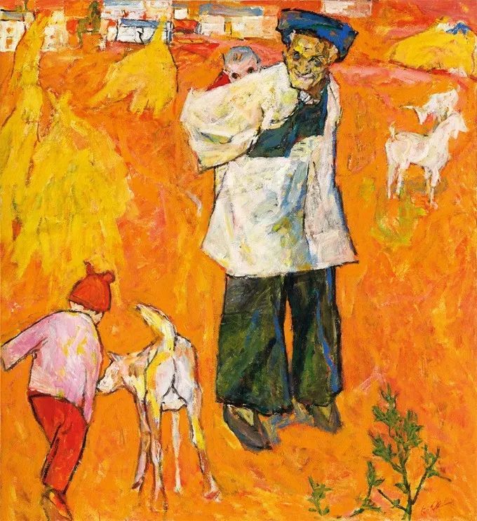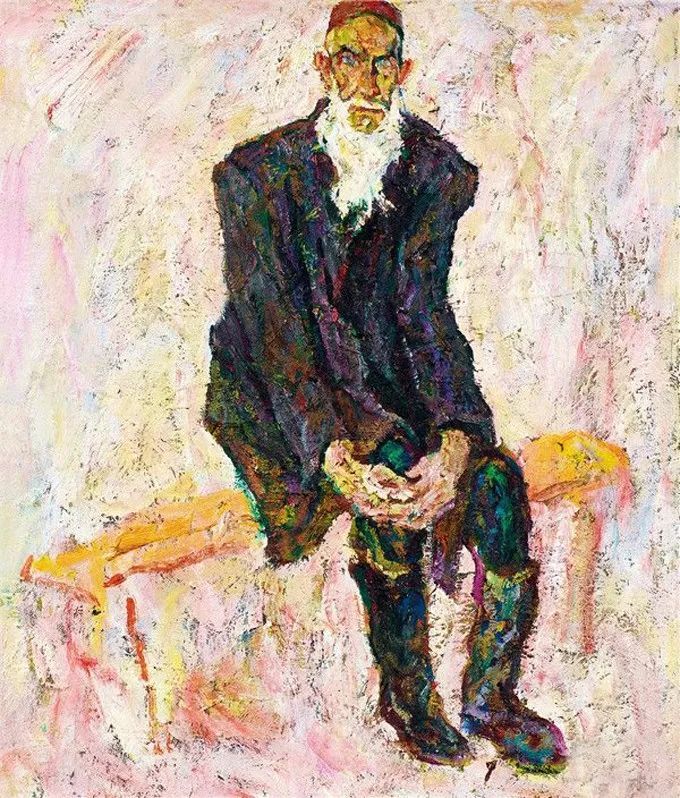 《维族老人》布面油画