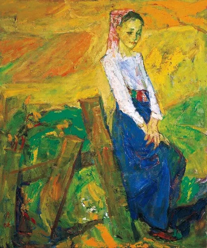 《蓝衣女》布面油画 53.5×65.5cm 1987 中国美术馆藏