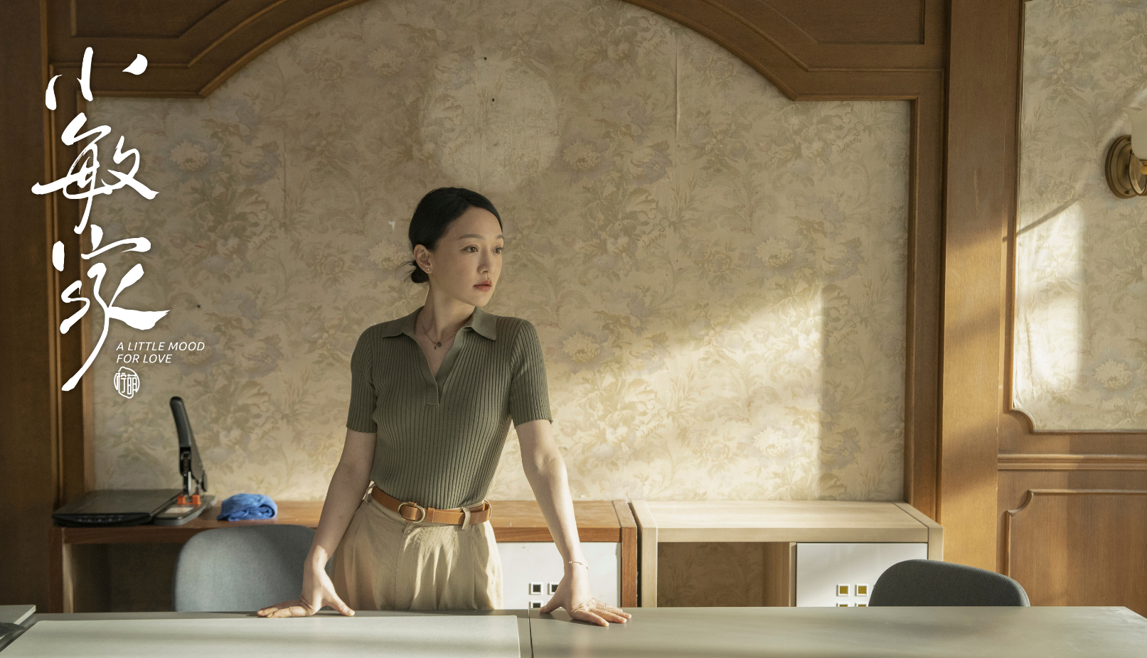 LOOK9:莫兰迪绿色针织衫+卡其色高腰阔腿裤