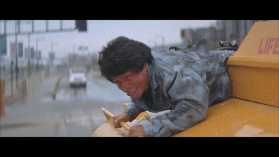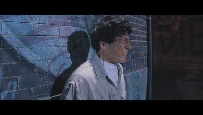另一场戏就是在天台上被小混混们追到绝境,面对恶棍安德鲁的羞辱,他狠狠地抓着一根汽车天线抽打了一下安德鲁。这一下,打出了骨气,也让观众出了口恶气。成龙在躲避敌人的围追堵截中,表现出角色的伤痛和愤怒,急智和勇气,都让观众感受到一个人物的真实情绪。成龙在动作场面中的情绪表演已经达到收放自如的程度。