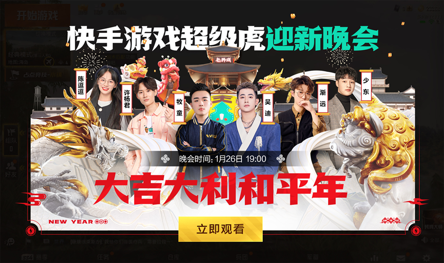 前面说到了龙狮文化,和平精英为了龙狮文化的热度得以延续,将在小年夜的晚上与快手联动举办一场晚会,在晚会上,和平精英将以电子竞技的形式,把赛事竞技与龙狮文化结合起来,把游戏生态与传统文化融合在一起,让大家能够更加近距离地感受到龙狮文化的魅力。