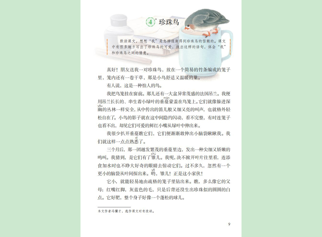 《珍珠鸟》作为五年级上册第一单元的最后一篇课文,虽说是星号课,可是仍然是学习的必要内容。如果老师感觉学习能力欠缺,当成一般的精读课文也是可以的。