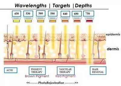 光子嫩肤的原理主要是应用特定的强脉冲光能量穿过皮肤,并且不同波长的强脉冲光对组织的作用具有选择性,从而选择性作用于皮下的小血管、色素团或色素细胞,升温使之温度高于正常皮肤组织,利用它们的温差使血管封闭,色素团和色素细胞破裂、分解,达到改善和治疗肌肤的xiao果。