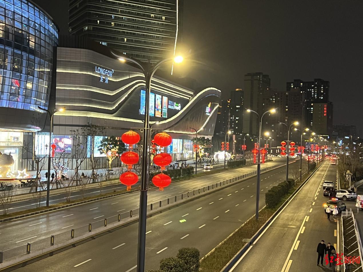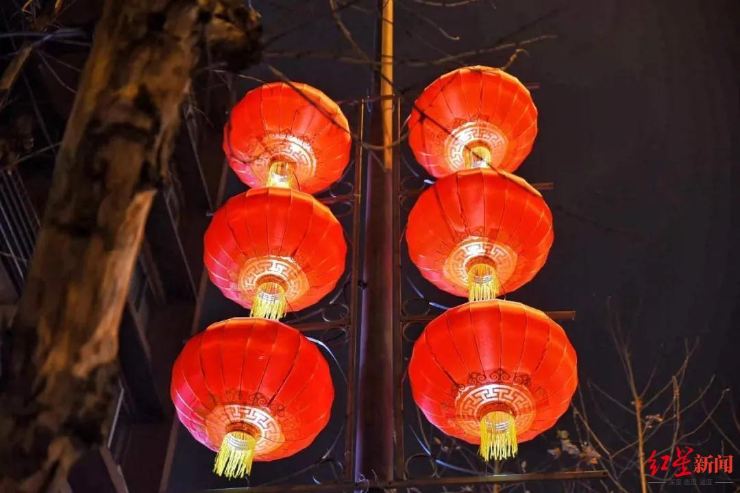 新鸿路、一环路成华段、蜀都大道(水碾河段)等路段道路两侧已悬挂了不少灯笼,不少沿街商铺门口也挂上了灯笼,营造出浓浓的节日氛围。“挂灯笼是我们中国的传统,灯笼挂起来,年的脚步就近啦,祝愿我们的祖国新的一年风调雨顺、国泰民安。”家住成华区的市民周毅表示。