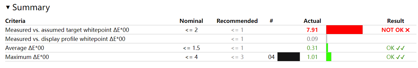同时它的平均色彩偏离值也只有 0.31,最大色彩偏离值也只有 1.01,所以是数一数二的好屏。