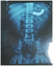 最后,复查腹部平片的结果显示,小朋友消化道内的磁力珠已全部取出。