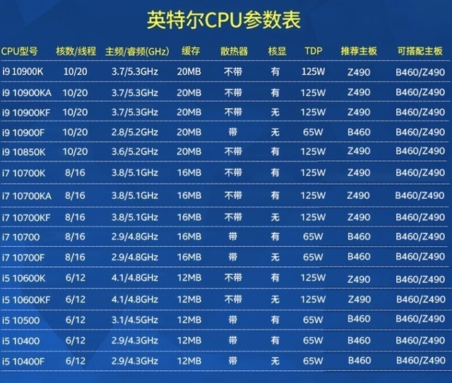 这也是众多小白用户攒机极易“翻车”的地方,CPU后缀不同,代表着其拥有独特的性能设计,有的代表着超频,而有的表示无核显,还有的后缀表达的是低功耗,所以对于广大攒机爱好者而言,在选择CPU的时候,最好明确电脑需求,按需配置合适的CPU,然后再挑选其他硬件。