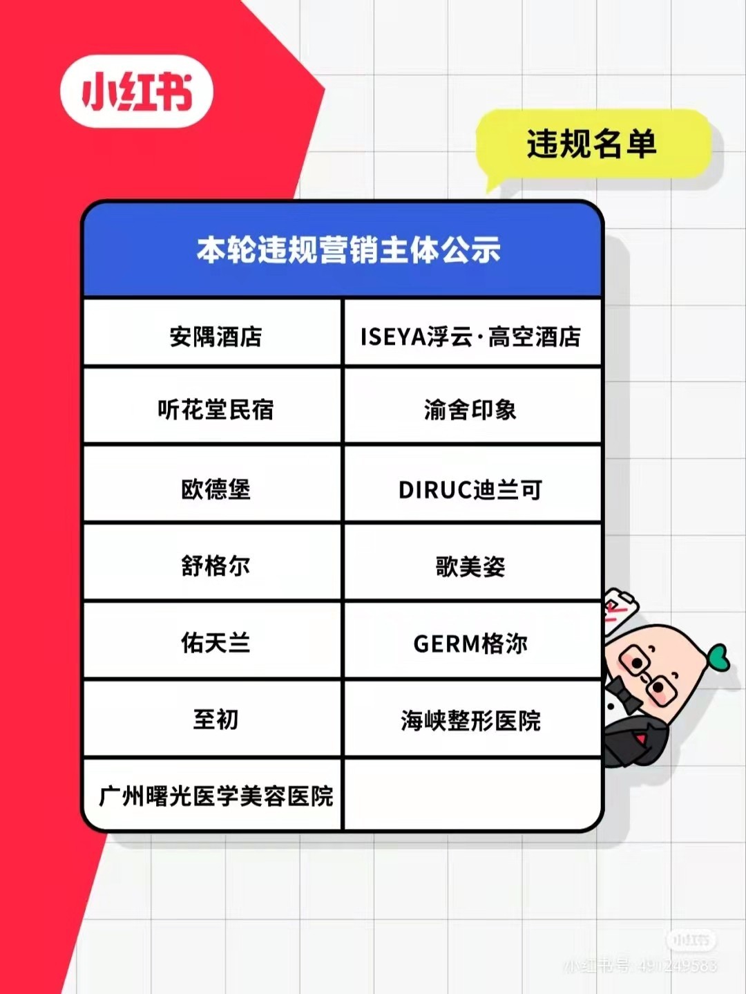 尽管小红书官方账号不定期发布违规名单,对违规品牌、机构、账号作出封禁处罚。但频频发布的违规处理结果公示并未改善小红书的内容生态。