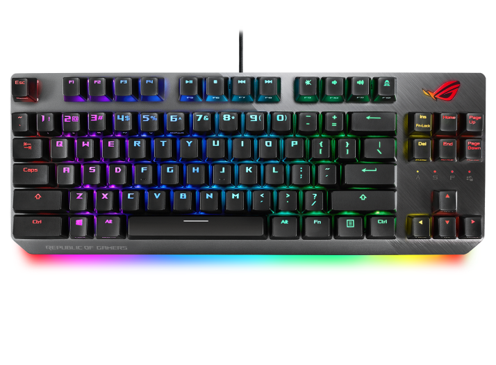 另一款全新机械键盘则是ROG游侠RX机械键盘TKL版,据了解,它比原版新增了无线模式,也既蓝牙模式和2.4G无线模式,来到如今逐渐成为标配的三模。轴体则是ROG自家研发的“RX光学机械轴”,提供了RX红轴和RX蓝轴两周轴体,前者带来线性的流畅丝滑手感,后者提供段落感十足的清脆手感。键帽同样采用双色注塑的PBT键帽,耐磨不易打油,还支持透光,配合华硕的AURA SYNC软件调配,可以自定义出最酷炫的RGB灯效。