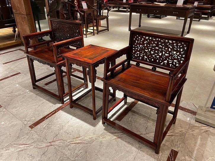 在现在红木市场上,玫瑰椅的产量较多,价格相对适中,款式适合现代家居装修,可与普通家具搭配使用,深受人们喜爱。
