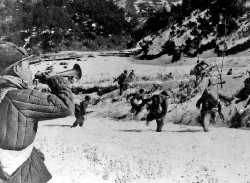 1951年4月22日,中朝军队正式发起第五次战役,进行全面反攻。三八线附近在这一天突然炮火连天,密集的枪炮声令战场上的人几乎陷于失聪状态。在志愿军的强大攻势下,联合国军阵脚不稳,逐步向后撤转移。