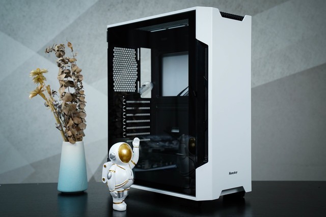 航嘉GX580H水冷版采用时尚的设计风格,机箱表面采用烤漆工艺带有些许磨砂质感。纯白的外观配合棱角分明的外形更显时尚,T形的黑色斜面和白色产生撞色美感,同时适合广大用户DIY装机,后期贴纸和更改配色也会更加容易。