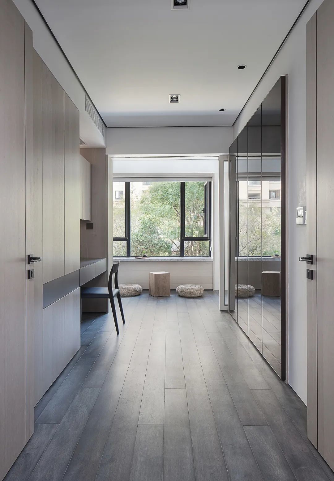 ▲在木饰面质感的装饰下,结合木地板的地面,使得过道空间也简约大方而时尚。