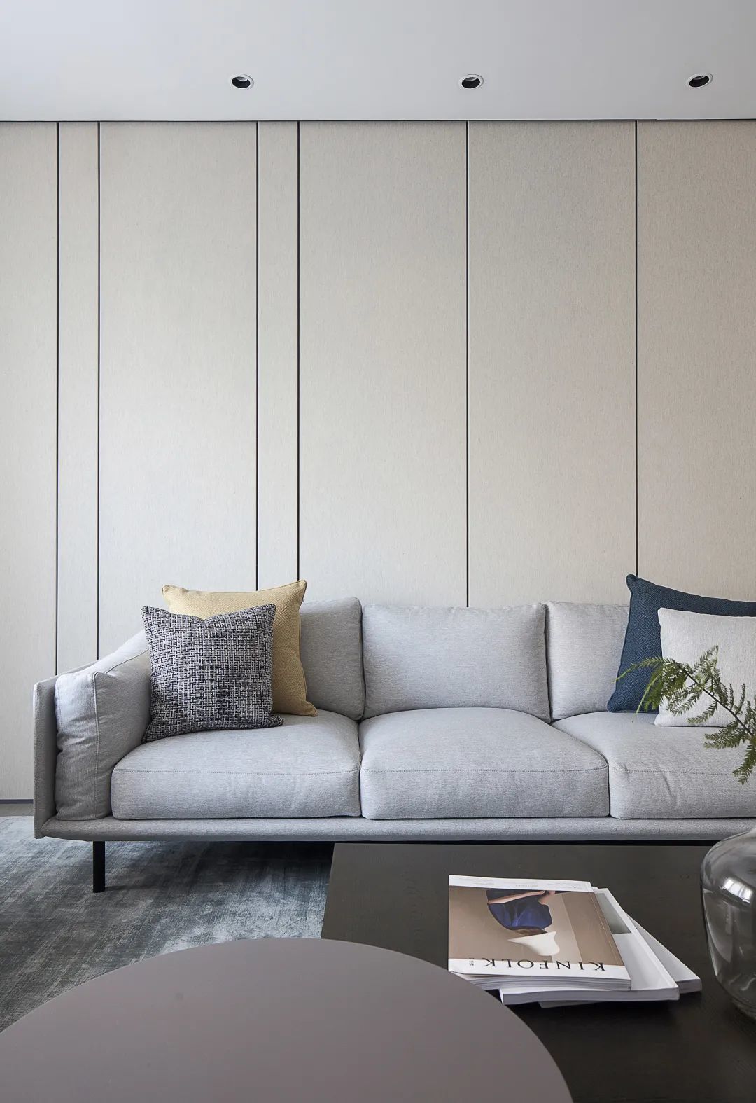 ▲卡其色的硬包沙发墙,布置灰色布艺沙发,还有素雅的抱枕,让客厅空间显得格外的轻松舒适而自然。