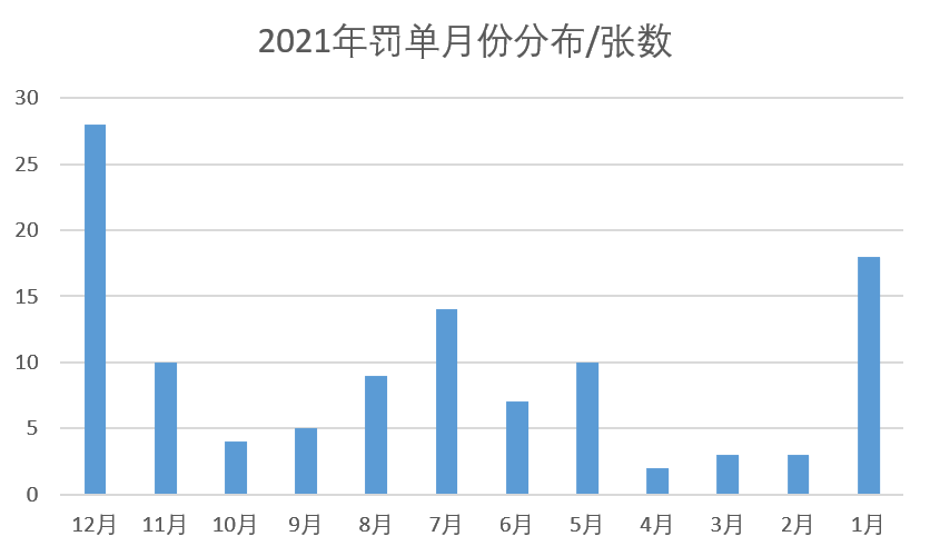 在刚刚过去的2021年的最后一个月,工行也因各种违法违规行为收到了银保监会系统开出的28张罚单,这意味着,加上2022年年初近1个月的时间,工行已经连续2个月收到逾20张罚单。俯瞰2021年全年,工行每月均会收到2张以上的行政处罚书,12月、1月和7月所收罚单最多,分别收到28张、18张、14张罚单。