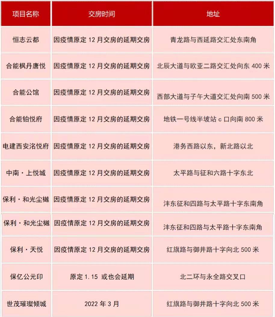 有鉴于此,我们特别整理汇总了2022年1-3月陕西部分楼盘交付时间,以供参考: