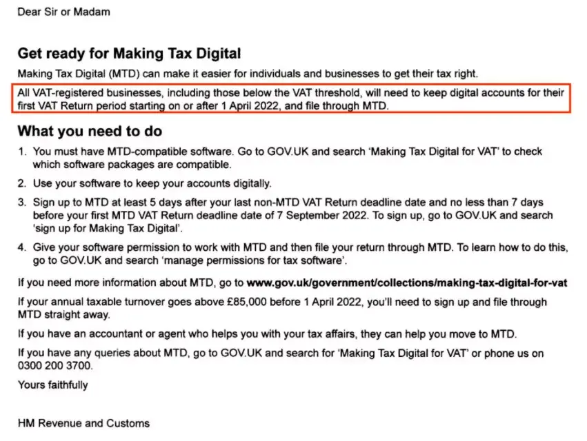 2022年4月起,国税局要求MTD全面覆盖,不论商户的年销售额是否超过85000英镑,所有拥有英国VAT的公司都必须使用MTD软件申报。