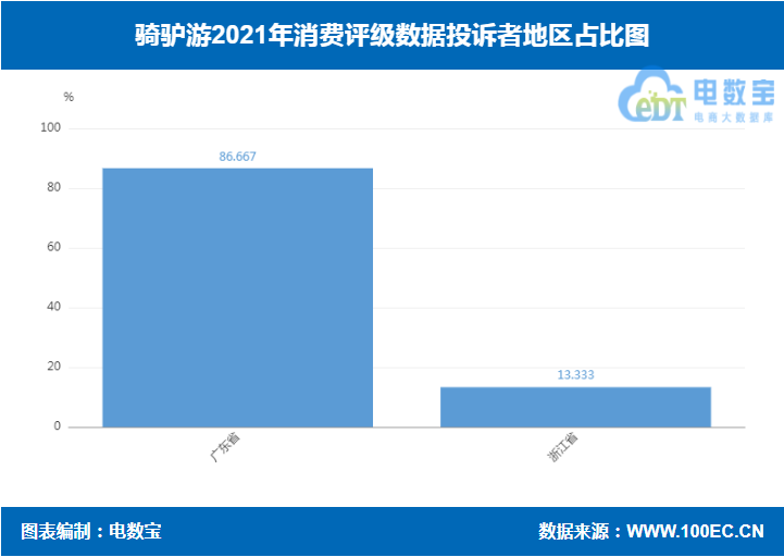 根据网经社旗下电商大数据库“电数宝”显示,2021年投诉“骑驴游”的用户主要集中地区为广东省、浙江省。