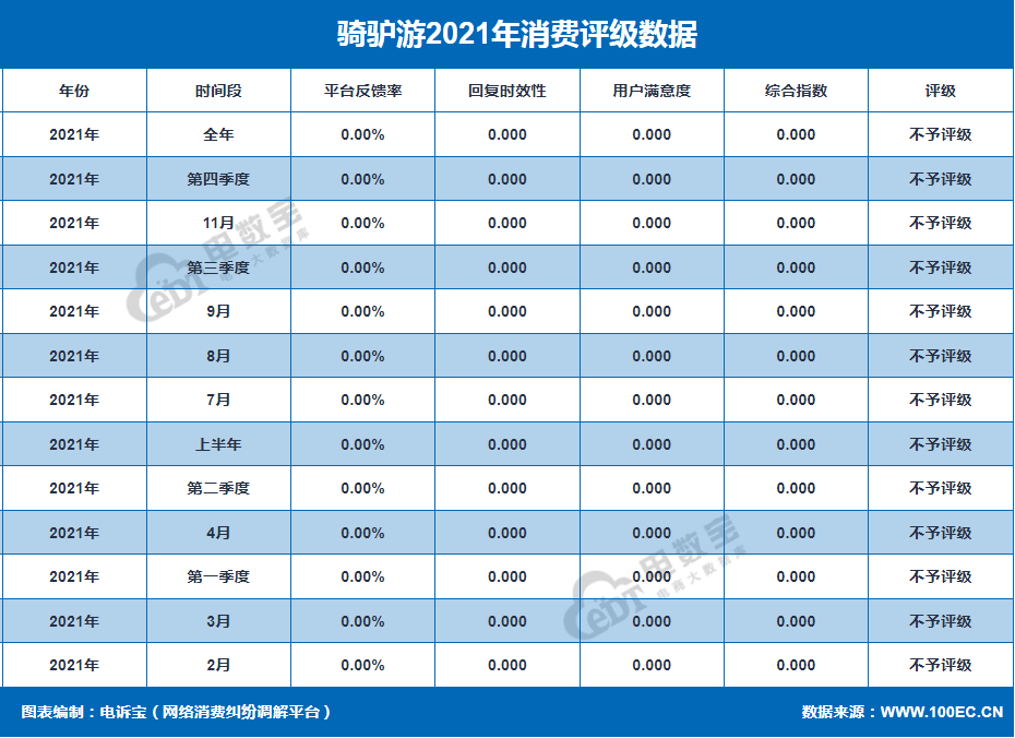 一、骑驴游用户投诉数据出炉:获“不予评级”