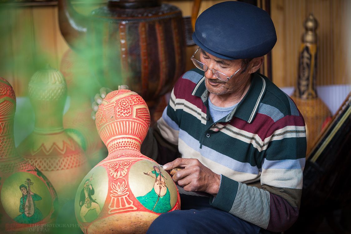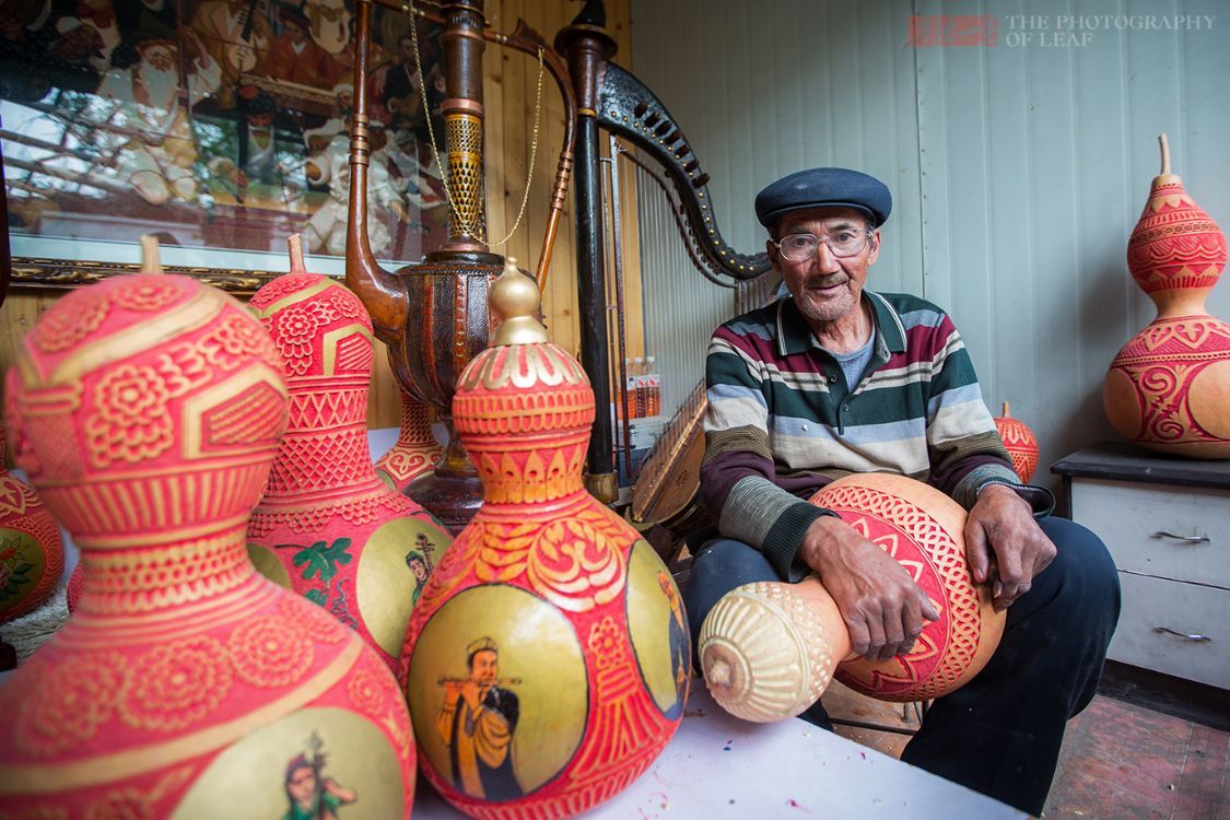 然而每个月拿着几千块退休金的他,却不愿闲着。出于对葫芦雕刻的喜爱,他就开始慢慢的学习、摸索,十年如一日的钻研,在继承了新疆老一辈雕刻技艺的基础上,还不断创新,不仅让他成为了一位远近闻名的葫芦雕刻大师,还推动新疆葫芦雕刻艺术的发展。