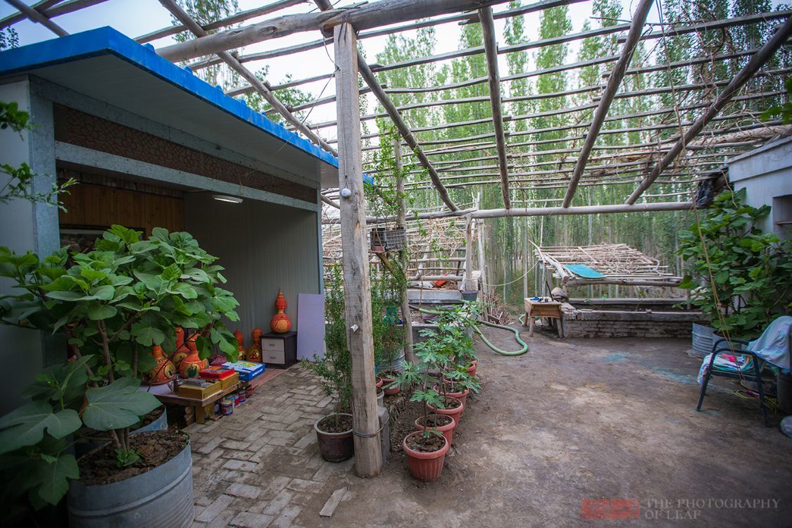 艾则孜·买买提的家位于新疆阿克苏地区沙雅县。走进他的家,眼前是一个干净整洁的农家小院,院子里种着花木,顶上搭有一个葫芦架,这个季节葫芦藤已经枯萎,只留下光秀秀的架子。大师的葫芦雕刻工作室就位于院子一侧,里面放着许多他的作品,很多还是半成品。