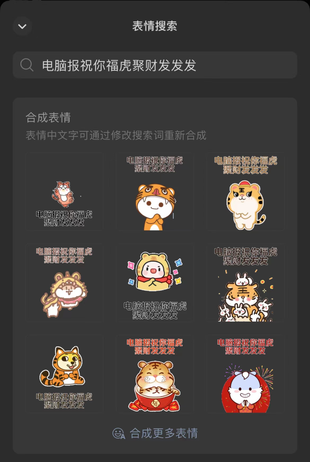值得一提的是,近日,微信在表情搜索中推出了合成个人专属祝福表情功能,支持用户自定义添加文字。