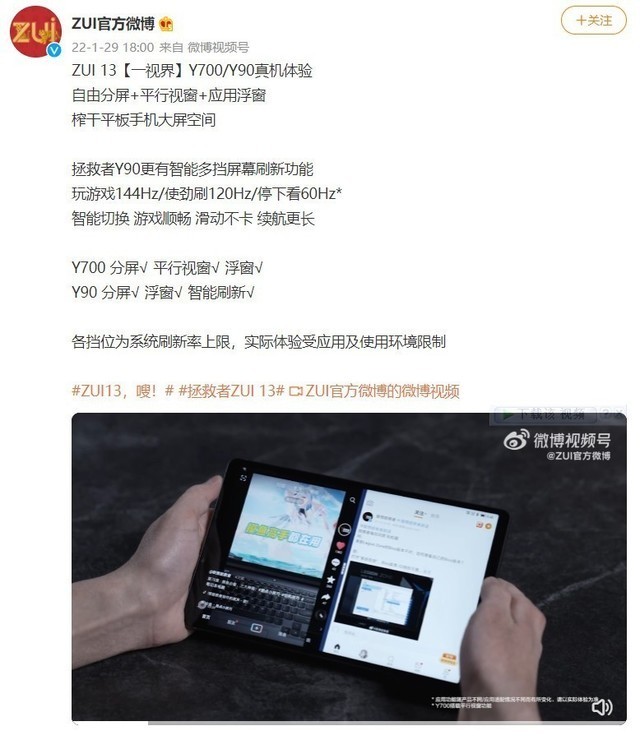 昨日,ZUI官微为大家带来了Y700/Y90真机上手体验,配合ZUI 13【一视界】支持多种场景使用。
