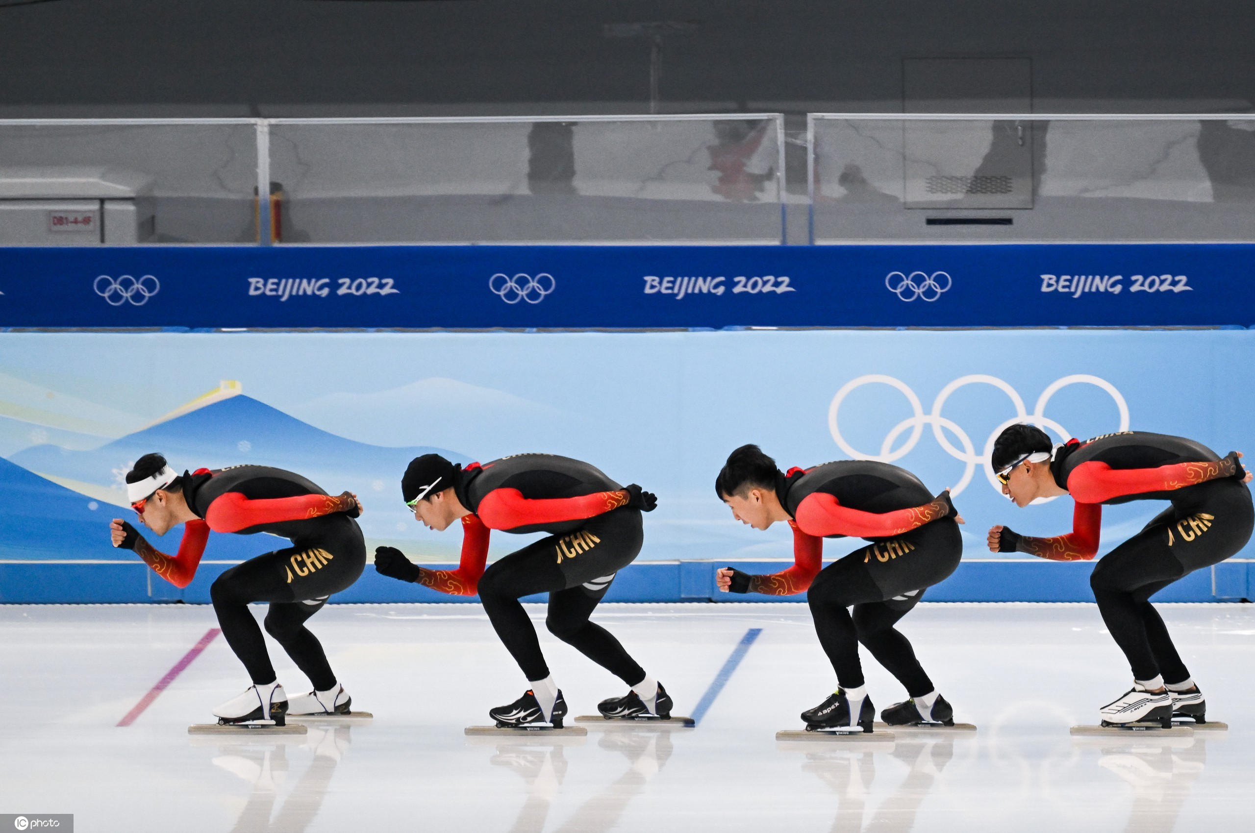 1月29日,北京,中国队队员在训练中。当日,中国速度滑冰队在国家速滑馆“冰丝带”进行训练,备战北京冬奥会比赛。 中新社记者 何蓬磊 摄