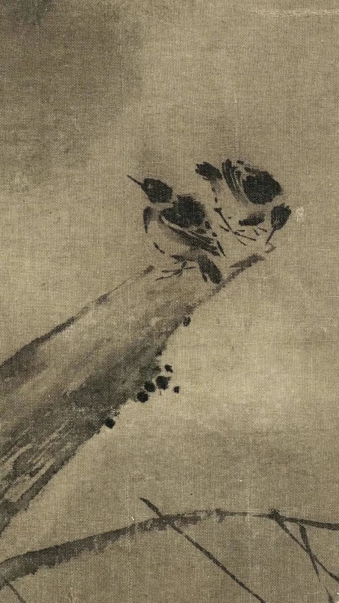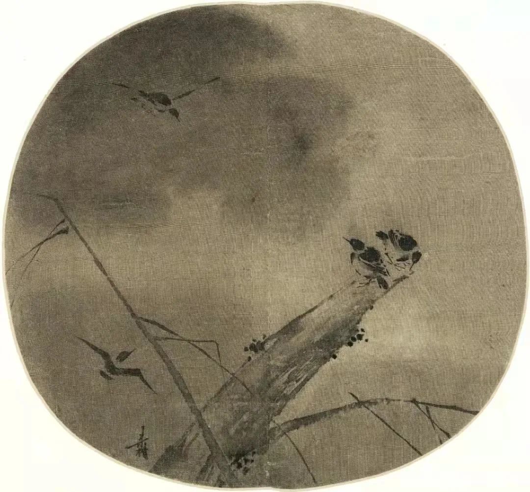 宋 梁楷《疏柳寒鸦》绢本设色 纵26.4厘米 横24.2厘米