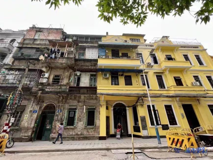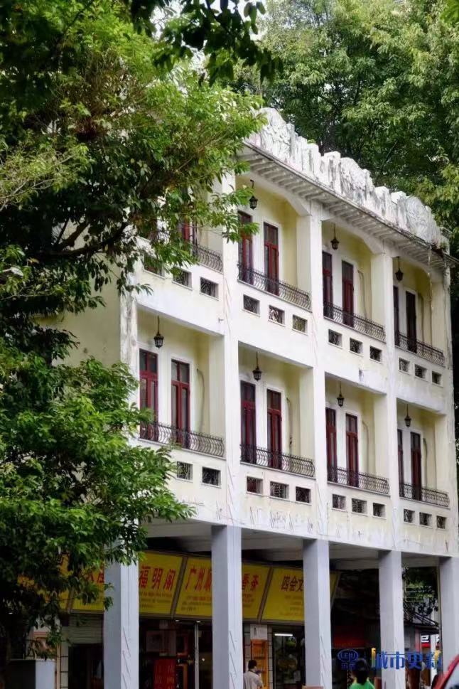 沿着文德东路走百米左右,一排黄色外墙的建筑相当惹人注目,此处便是建于20世纪初的文德楼。
