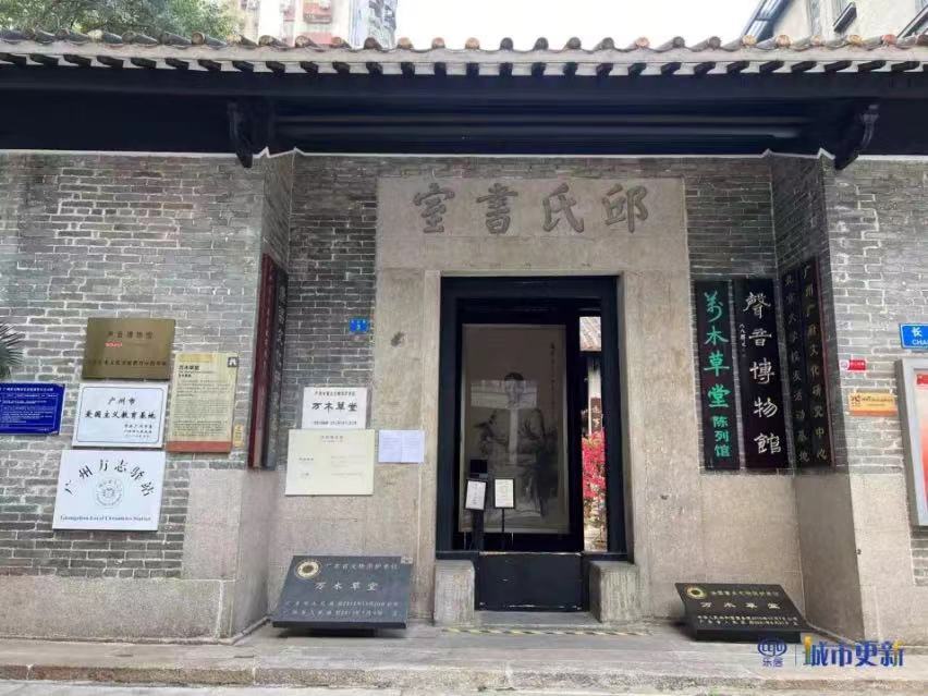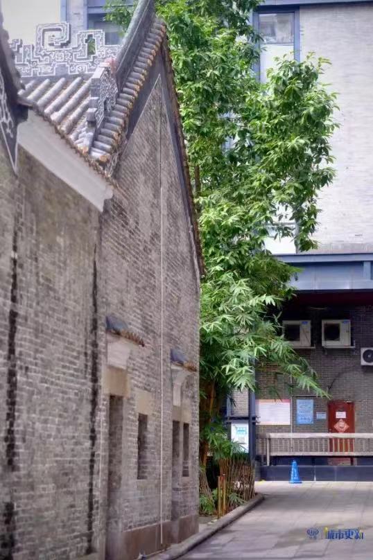 典型的清代广府地区祠堂书院建筑,在修缮后仍完好地矗立于高楼之间,讲述着百年前的那段历史。