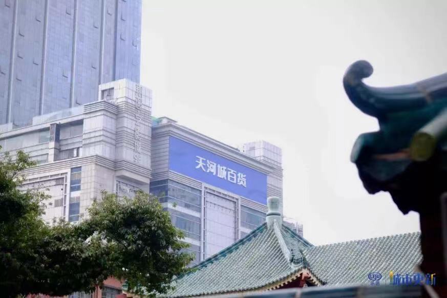 绿瓦、朱檐、红墙......按原貌修缮的文献馆古色古香,尽显岭南韵味,以至于抬头看到“天河城百货”几个字时还有种古今交织的错觉。
