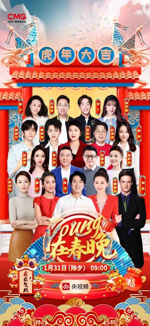 2022虎年春节来临之际,由央视频创新推出的除夕融媒体直播节目《Young在春晚》将于今日即1月31日上午9:00开始,超过12小时不间断陪伴大家过大年。